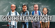 Politiker-Motive zeigen öffentliche Personen bewusst überspitzt im politischen Kontext. Alle weiteren Motive sind klare Statements zur öffentlichen Meinungsäußerung.