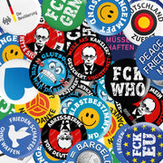 Politiker-Motive zeigen öffentliche Personen bewusst überspitzt im politischen Kontext. Alle weiteren Motive sind klare Statements zur öffentlichen Meinungsäußerung.